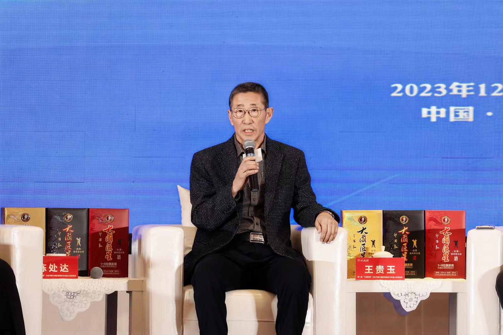 王贵玉大师就中国国家级评酒会、中国白酒主流香型介绍及产地分布、ISGC国际烈酒大赛介绍、大国匠星酒酒体评价等方面发表自己的看法。